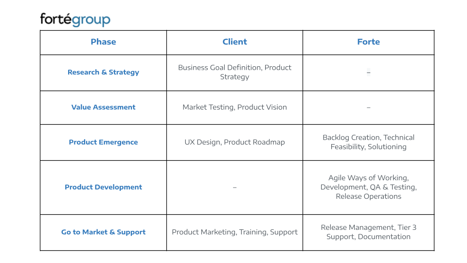 Forte assumed end-to-end ownership of the product — from roadmap planning to release management. The transition included: